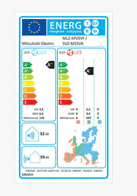 Sistem deluje s plinom R32, ki zagotavlja visoko energetsko učinkovitost (razred A++) in zmanjšan vpliv na okolje.
